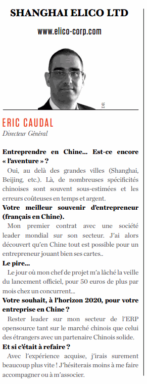You can find the original publication of Connexion for November 2014 here: http://publications.ccifc.org/Connexions71web.pdf Specially in page 39, Eric Caudal, Founder of the Elico Corp group answers several questions about the difficulty to achieve business in China.