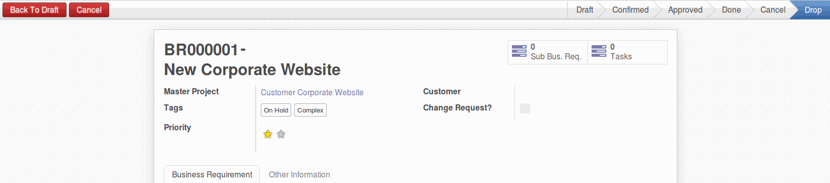 - Business Requirements Project: a wizard to automatically create the projects based on the resources lines.